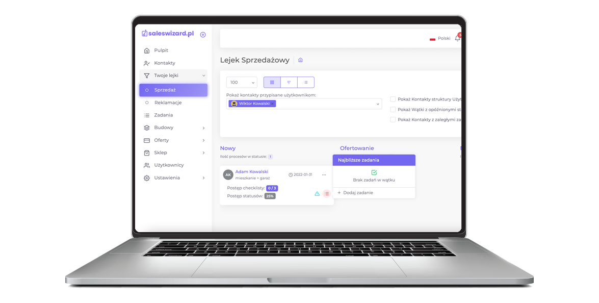 Zarządzaj potencjalnymi klientami - nadawaj im statusy, grupuj w odpowiednie lejki sprzedaży. Więcej